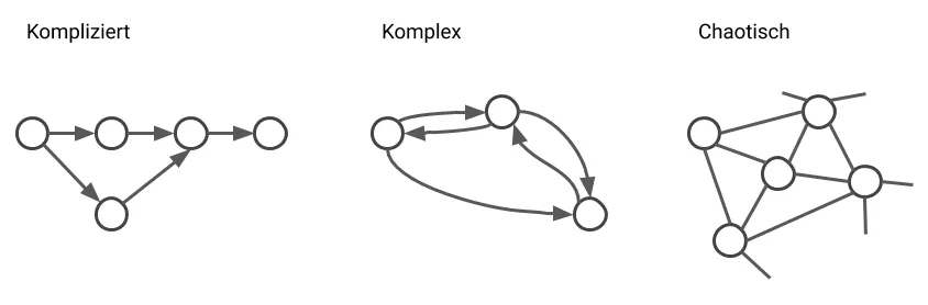 Hoch-skalierende Systeme mit hunderten von Komponenten können sogar in den Bereich der chaotischen Probleme übergehen, bei dem wir gar nicht mehr nachvollziehen können, ob es sich bei einem Phänomen um Ursache oder Wirkung handel. Diese Art von Problemen wollen wir aber an dieser Stelle bewusst vernachlässigen. Es gibt ganze Disziplinen wie zum Beispiel Chaos Engineering, welche sich der Beherrschbarkeit dieser Probleme widmen.