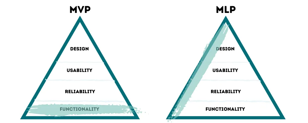 Beim MLP hingehen, weiß man bereits im Vorfeld viel mehr über den Markt und das Kundensegment. Die Kundenprobleme und das Kundenverhalten sind oft viel mehr erforscht, als bei einem MVP. Das Lernen und schnell auf den Markt bringen, steht nicht so sehr im Fokus. Trotzdem, beinhaltet die Definition ebenfalls das Wort "Minimal". Die Funktionalität ist auch bei MLP auf das minimalste fokussiert. Allerdings wird hier mehr Aufmerksamkeit, auf die gesamte Nutzerinteraktion gelegt. Es geht nicht nur darum, die Funktion zu testen, sondern den Kunden von Anfang an zu Fans zu machen. Deswegen ist es bei einem MLP auch wichtig, dass das Produkt nicht nur die eigentliche Lösung ist. Themen wie Kundensupport, Vertrieb, Rechnungsstellung gehören ebenfalls mit dem zum Produkt und müssen berücksichtigt werden. Der Kunde wird nicht begeistert sein, wenn nur die eigentliche Lösung gut ist. Die Prozesse und Aktivitäten drum herum müssen ebenfalls begeistern.